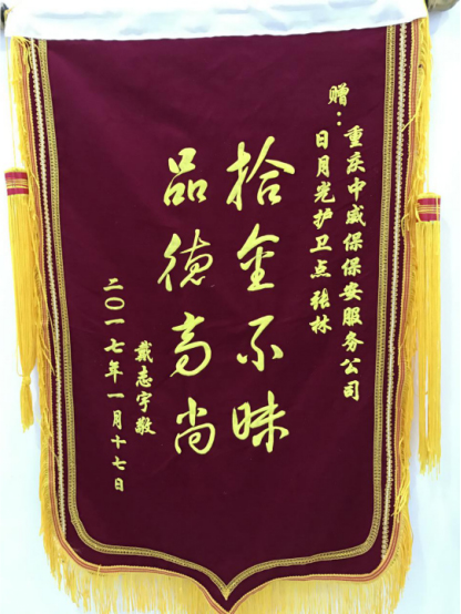 “在人來(lái)人往的商場(chǎng)內(nèi),我的手機(jī)還能找回,真沒想到,感謝中威保的保安張林”繼2016年12月22日熱心救助昏厥休克男子獲錦旗后,1月28日我司日月光中隊(duì)又獲得市民錦旗致謝。