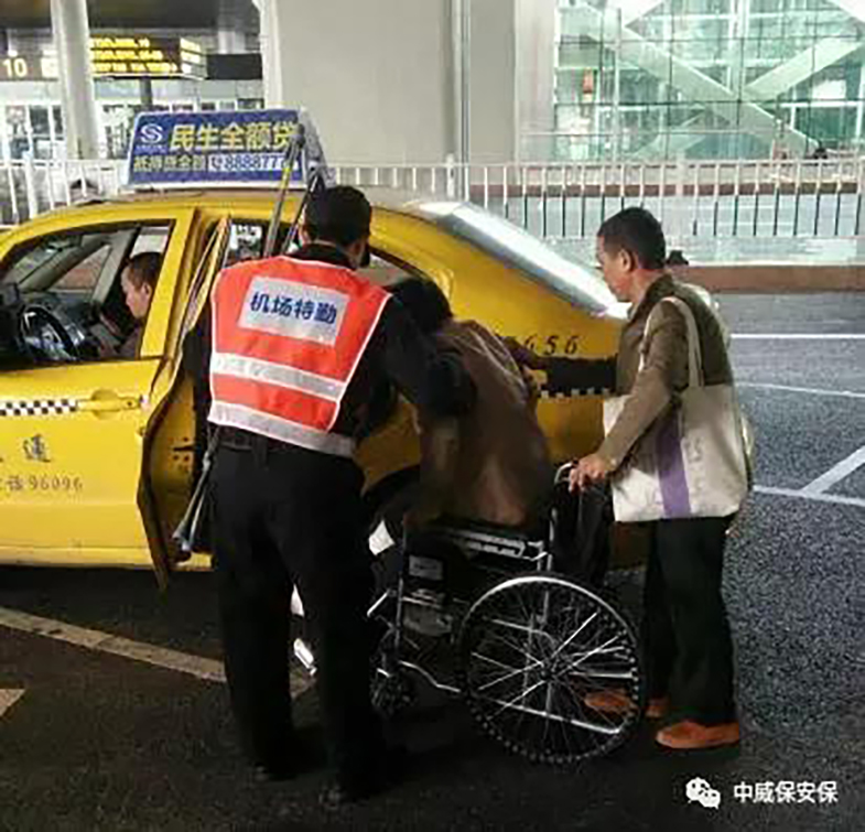 11月15日上午10點30分左右,中威保機場大隊特勤人員在T3出租車站臺執(zhí)勤時發(fā)現(xiàn)一位乘客正推著一位坐在輪椅上的阿姨準(zhǔn)備乘車。只見,該乘客挎著沉重的大包一邊開車門,一邊試圖將輪椅上的阿姨抱進車內(nèi)。由于行李過多,行動不便,阿姨一直未成功坐上車。中威戰(zhàn)士李秀官、張兆信、羅玉彬見狀立即上前幫助乘客將輪椅上的阿姨抬進車內(nèi),并將輪椅收疊好放入出租車后備箱......